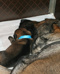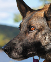 Apollo combined high drive and a very clear head and was easy to train. In protection work, he took control of the helper with his crushing grip and excellent fight drive and aggression. Apollo was a serious dog on the field and protective at home. Off the field, Apollo had an excellent temperament and was social with both people and dogs. In the Summer of 2015, Apollo travelled back to the UK to retire with Lou's parents. He spent 6 years having a wonderful time and lots of walks until he passed away at 14.5 years old. Apollo's mother was our own Gana who was handler-owner-trained by us from a puppy to SchH3 IPO3 FH CD AD TC CGC. Gana was from one of the best German Working Line Kennels, she was line-bred 5-5 Afra vom Stoppenberger Land, with excellent producing Karthago females on her mother's side, and also Mink and Arthus Lunsholz. Gana's father Orry, competed at the BSP and his mother, Wespe is one of the famous 'W' litter Wannaer Höhen. Apollo's father was our own Bodeus who was also handler-owner-trained by us from a puppy to SchH3 IPO3 VPG3 FH AD UD NA TC CGC WUSV. Bodeus was line-bred on Arec Bunsenkocher and the G litter vom Körbelbach (Gildo - Gaby) his pedigree contained other notable WUSV participants Link vom Muikenshof and Wumm von der Kaisersaule as well as herding lines known for their intelligence and biddability.