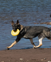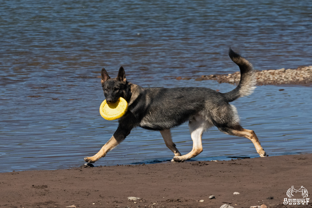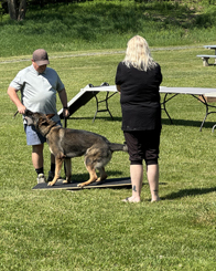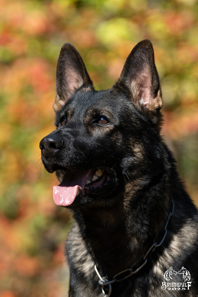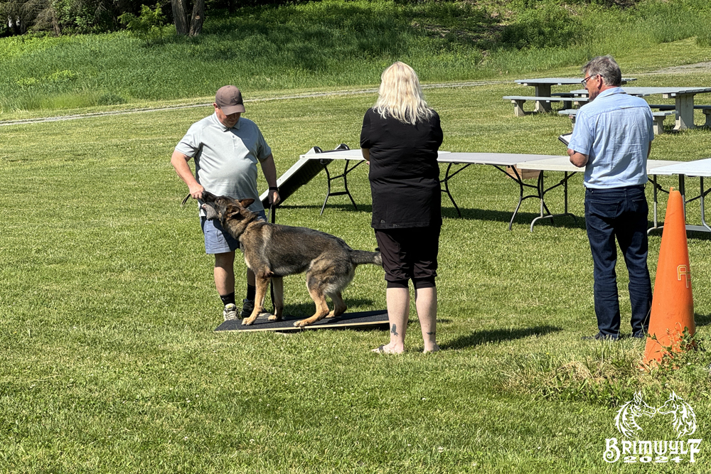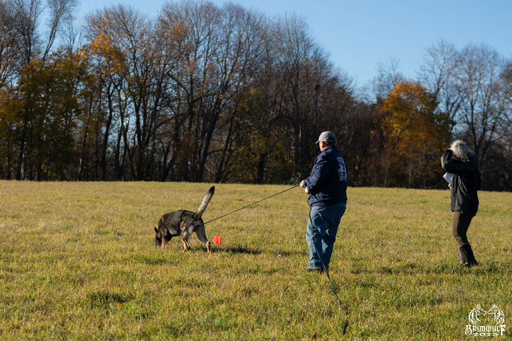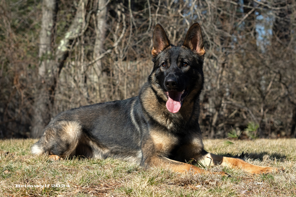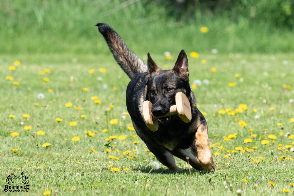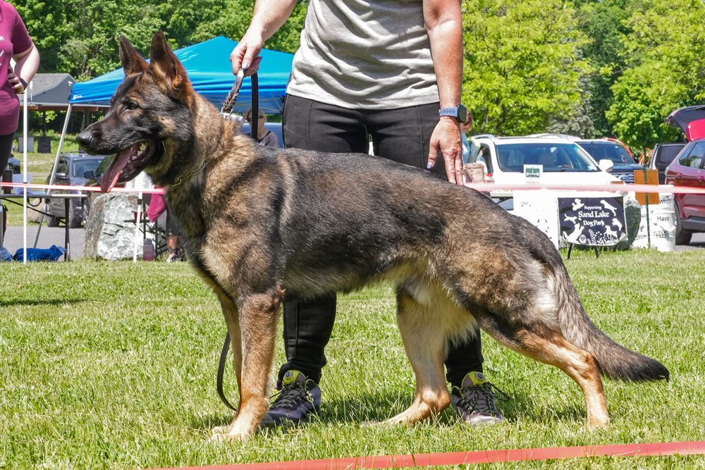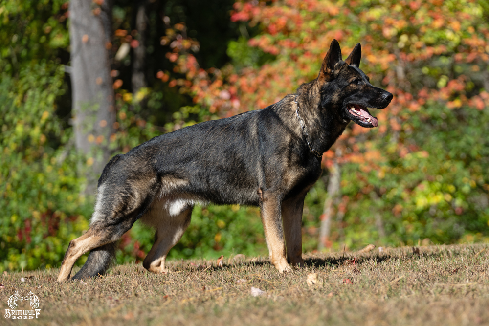 Medium size, medium strong, very good head, firm ears, high withers, slight dip behind the withers. Firm back, slightly short, slightly steep croup, good front, very good rear angulation. Harmonious underline, straight in coming and going, slightly freer reach, effective rear drive. TSB pronounced, lets out. Kormeister: Don Yelle, 10/2/2025 Quinebaug Schutzhund Club, CT, USA