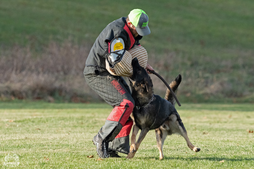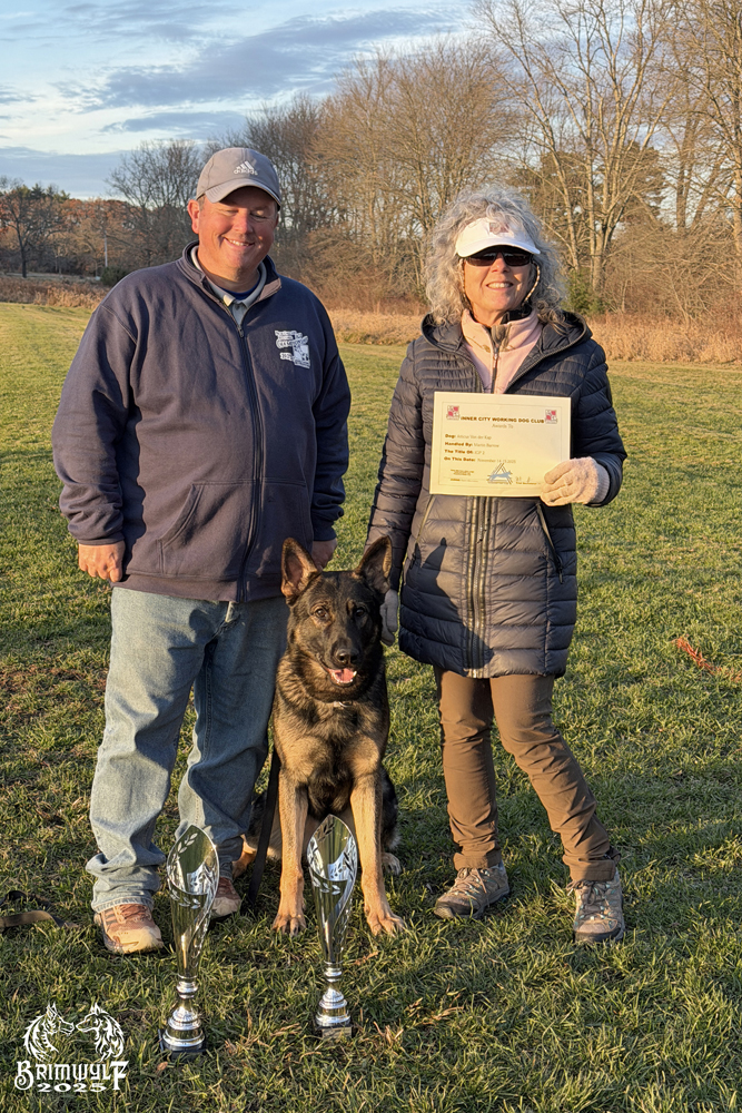 Atticus is an extremely food-driven and handsome young male who comes to us from a friend in our club. Atticus is growing up very nicely shows very good tracking ability, a joy of working for his handler in obedience as well as excellent grips in protection. Atticus's mother is Nora von de Sleghte Bruute who caught our eye when she came to our club to do her IGP1. She is line-bred on legendary dogs Nick vom Heiligenbösch and Yoschy von der Döllenwiese. We saw her father competing at the 2012 WDC when we were there with Apollo. Atticus's father is V Furbo vox Meinerz IGP3 KKl. Furbo is one of the most powerful dogs currently competing in this country while also being extremely clear and having an excellent off switch. He has multiple helper's favorite awards and was the 2021 Universal New England Sieger. He finished 8th place at the 2022 Working Dog Championship and is also the 2024 New England Regional Champion!
