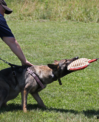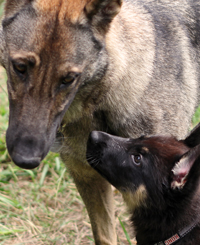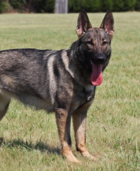 Bella was a high drive, athletic female. She was quick in protection with full, calm grips and plenty of attitude. She also had excellent natural tracking ability. Bella passed her IPO1 a few months before her third birthday. Later that year we bred her to Griff von Tajgetosz, she had a single female puppy and proved to be an excellent mother and helped raise other puppies. Her daughter Morganti was a gorgeous bi-color who we trained for 6 months, unfortunately she had 2 p4 teeth missing and went on to another home where she enjoyed Nosework competitions. Bella enjoyed her retirement from competition with a local family, unfortunately she passed away due to cancer just before her 6th birthday. Bella's mother was our own Gana who was handler-owner-trained by us from a puppy to SchH3 IPO3 FH CD AD TC CGC. Gana was from one of the best German Working Line Kennels, she was line-bred 5-5 Afra vom Stoppenberger Land, with excellent producing Karthago females on her mother's side, and also Mink and Arthus Lunsholz. Gana's father Orry, competed at the BSP and his mother, Wespe is one of the famous 'W' litter Wannaer Höhen. Bella's father Nike is the 2009 WDA National Champion and also came 2nd at the 2008 WUSV in Kentucky. Nike is line-bred 4-2 on the WUSV champion Link vom Muikenshof and also 4-5 on the famous super-producing female, Umsa vom Bungalow. Nike's father is the renowned WUSV producer - Ufo van Guy's Hof.