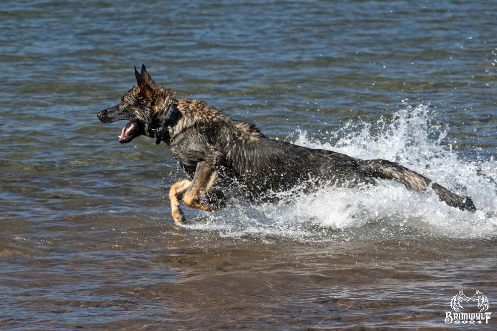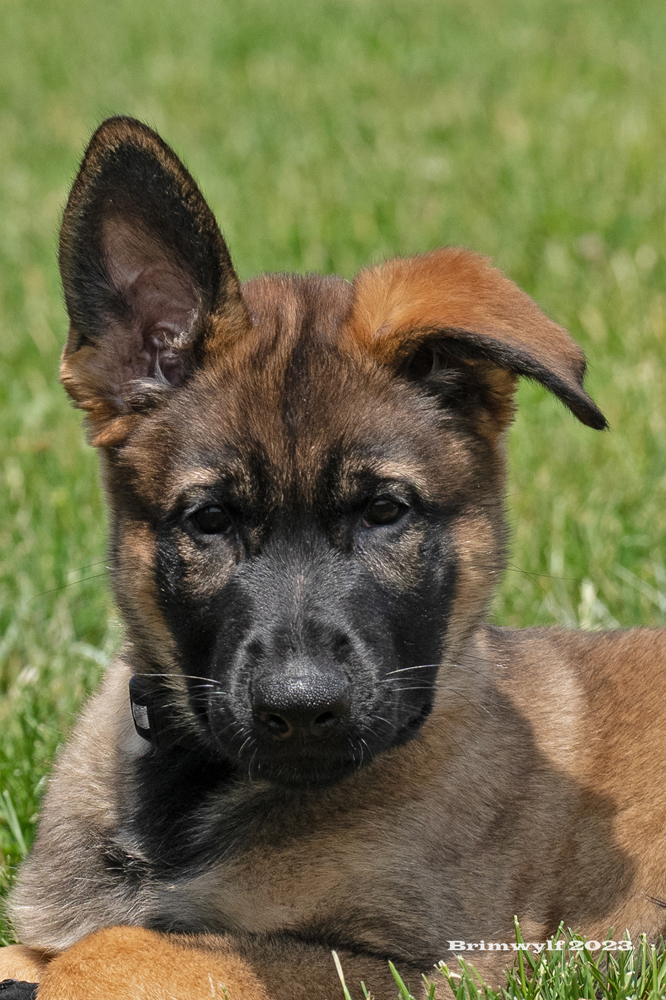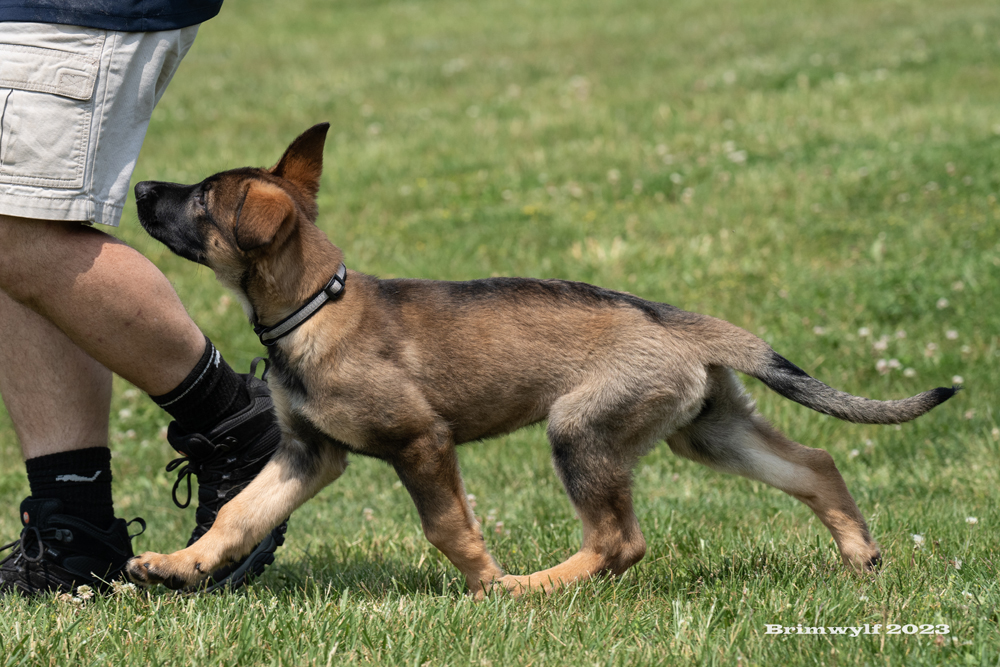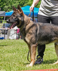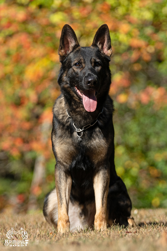 Medium size, medium strong, very good head, firm ears, high withers, slight dip behind the withers. Firm back, slightly short, slightly steep croup, good front, very good rear angulation. Harmonious underline, straight in coming and going, slightly freer reach, effective rear drive. TSB pronounced, lets out. Kormeister: Don Yelle, 10/2/2025 Quinebaug Schutzhund Club, CT, USA