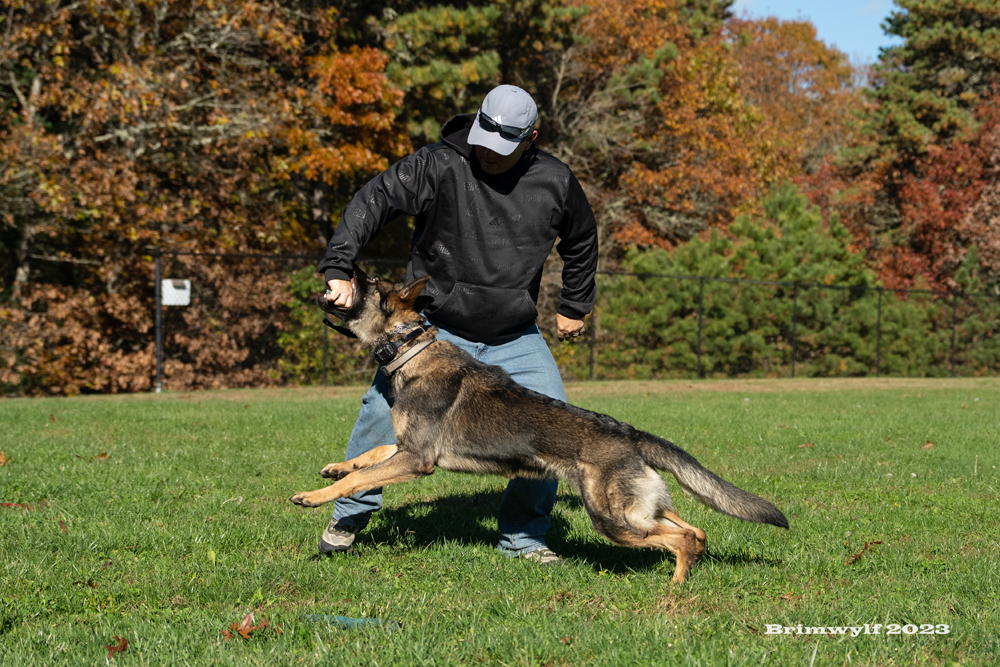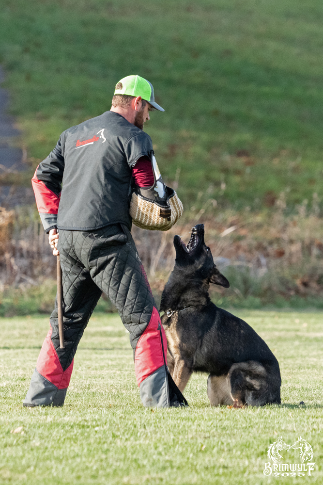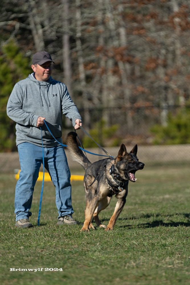 Atticus is an extremely food-driven and handsome young male who comes to us from a friend in our club. Atticus is growing up very nicely shows very good tracking ability, a joy of working for his handler in obedience as well as excellent grips in protection. Atticus's mother is Nora von de Sleghte Bruute who caught our eye when she came to our club to do her IGP1. She is line-bred on legendary dogs Nick vom Heiligenbösch and Yoschy von der Döllenwiese. We saw her father competing at the 2012 WDC when we were there with Apollo. Atticus's father is V Furbo vox Meinerz IGP3 KKl. Furbo is one of the most powerful dogs currently competing in this country while also being extremely clear and having an excellent off switch. He has multiple helper's favorite awards and was the 2021 Universal New England Sieger. He finished 8th place at the 2022 Working Dog Championship and is also the 2024 New England Regional Champion!