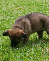 Bella was a high drive, athletic female. She was quick in protection with full, calm grips and plenty of attitude. She also had excellent natural tracking ability. Bella passed her IPO1 a few months before her third birthday. Later that year we bred her to Griff von Tajgetosz, she had a single female puppy and proved to be an excellent mother and helped raise other puppies. Her daughter Morganti was a gorgeous bi-color who we trained for 6 months, unfortunately she had 2 p4 teeth missing and went on to another home where she enjoyed Nosework competitions. Bella enjoyed her retirement from competition with a local family, unfortunately she passed away due to cancer just before her 6th birthday. Bella's mother was our own Gana who was handler-owner-trained by us from a puppy to SchH3 IPO3 FH CD AD TC CGC. Gana was from one of the best German Working Line Kennels, she was line-bred 5-5 Afra vom Stoppenberger Land, with excellent producing Karthago females on her mother's side, and also Mink and Arthus Lunsholz. Gana's father Orry, competed at the BSP and his mother, Wespe is one of the famous 'W' litter Wannaer Höhen. Bella's father Nike is the 2009 WDA National Champion and also came 2nd at the 2008 WUSV in Kentucky. Nike is line-bred 4-2 on the WUSV champion Link vom Muikenshof and also 4-5 on the famous super-producing female, Umsa vom Bungalow. Nike's father is the renowned WUSV producer - Ufo van Guy's Hof.